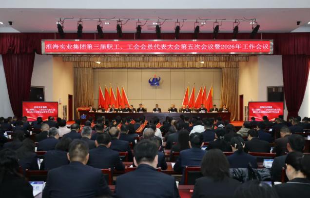 1月8日,淮海實業(yè)集團總部,第三屆職工、工會會員代表大會第五次會議暨2026年工作會議如期舉行。全體代表齊聚一堂,回顧極具挑戰(zhàn)的2025年,共同謀劃2026年發(fā)展藍圖。