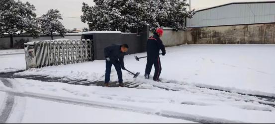 華星公司團(tuán)支部團(tuán)員青年不畏嚴(yán)寒,合理分工,第一時(shí)間清掃車(chē)間門(mén)口積雪,保障車(chē)間正常生產(chǎn)。