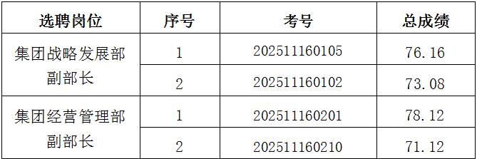 淮海實業(yè)集團機關部門副職招聘筆試、面試工作已結束,根據應聘人員筆試、面試總成績確定考察人選,現將考察人選公告如下:
