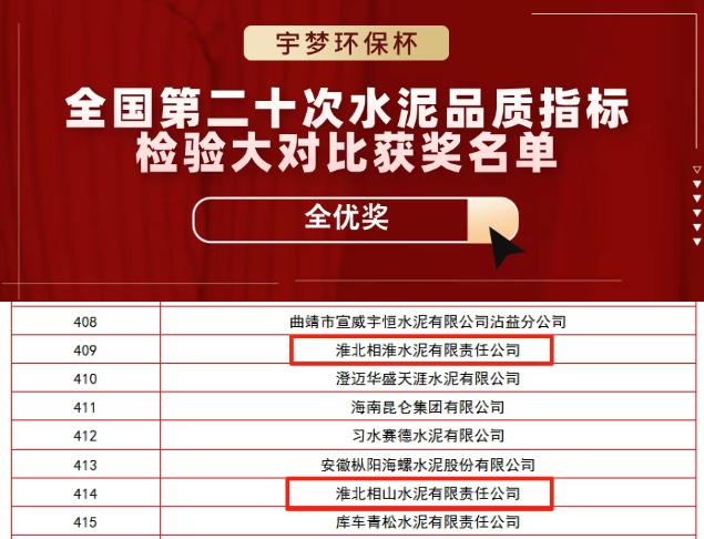 近日,從“宇夢(mèng)環(huán)保杯”第二十次全國(guó)水泥品質(zhì)指標(biāo)檢驗(yàn)大對(duì)比活動(dòng)中傳來(lái)喜訊,相山水泥一舉斬獲兩項(xiàng)“全優(yōu)獎(jiǎng)”。這是該公司繼上次榮獲安徽省特等獎(jiǎng)之后,在質(zhì)量管理領(lǐng)域的又一次自我超越,標(biāo)志著企業(yè)在品質(zhì)控制道路上邁上了新臺(tái)階。