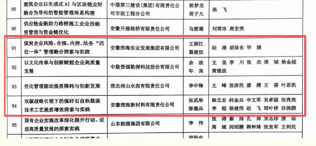 日前,中國煤炭工業協會公布2025年煤炭企業管理現代化創新成果評選結果。淮海實業集團共有10項創新成果獲獎,其中5項分獲發展類、黨建類二等獎,5項獲三等獎,創新實力再次獲得行業權威認可。