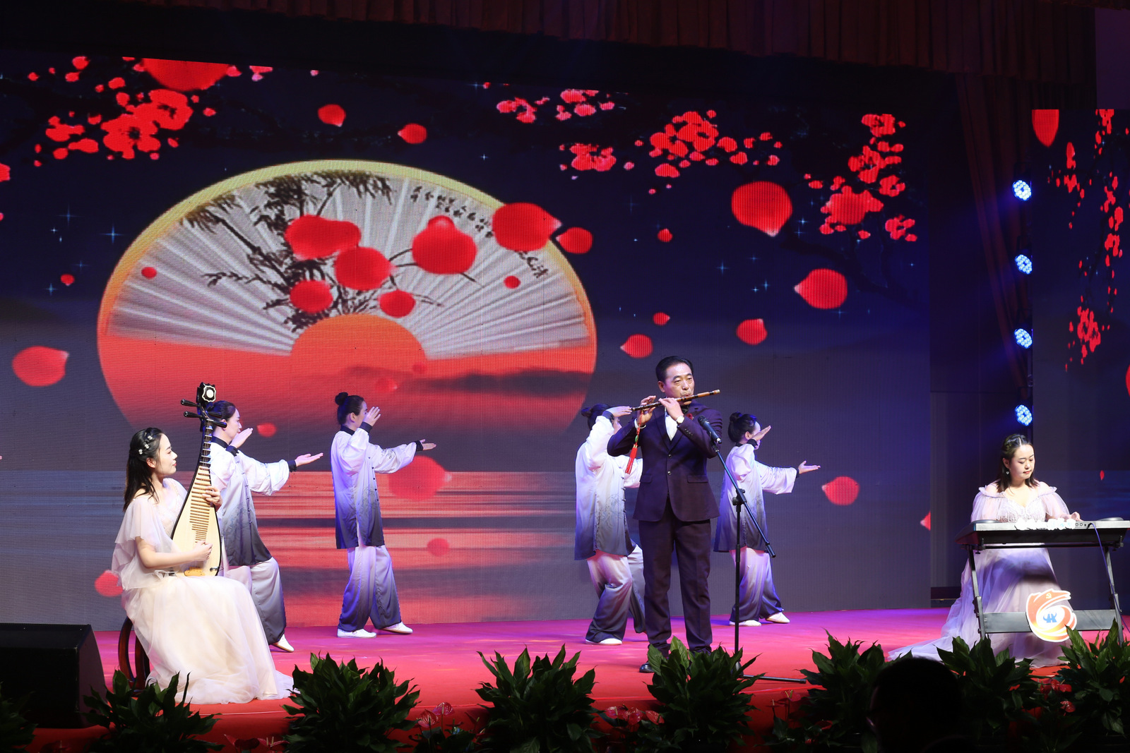 匯演現場,燈光背景交織變換,或像旗幟飄揚,或像畫卷鋪開,每一次的舞臺變化,都牢牢吸引了觀眾的目光,營造出喜迎黨的二十大勝利召開的濃厚氛圍。